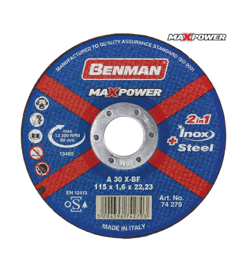 DISC TĂIERE OŢEL & INOX, MAXPOWER, Benman, 115x1.6mm 74270